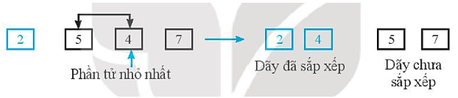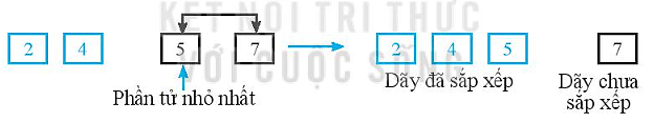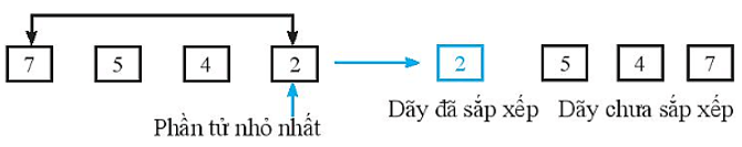 Phần tử có giá trị nhỏ nhất trong dãy được tìm thấy và đổi chỗ cho phần tử đứng đầu dãy.