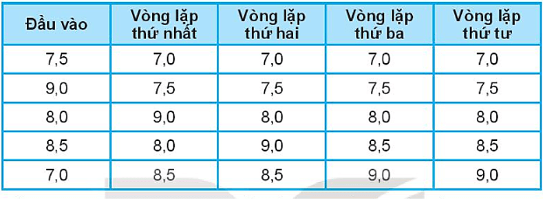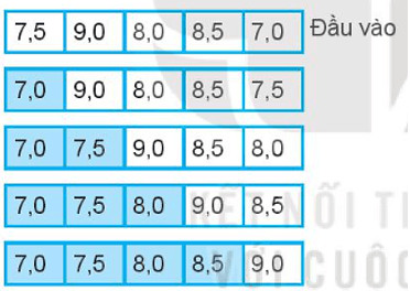 Kết quả các vòng thực hiện sắp xếp nổi bọt để sắp xếp điểm theo thứ tự tăng dần: