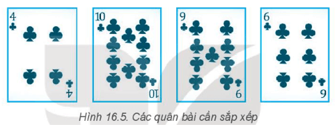 b) Em hãy mô phỏng lại thuật toán trên với các quân bài trong Hình 16.5
