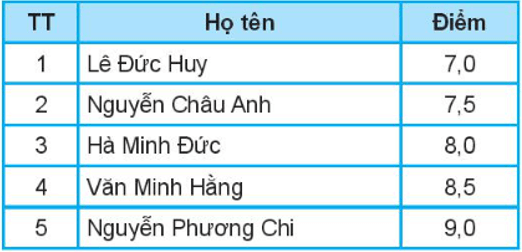 Câu 16.15 trang 61 SBT Tin học 7: Điểm môn Tin học của tổ một lớp 7A được ghi trong bảng sau: