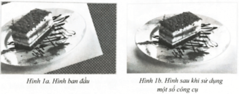 Câu E81 trang 41 SBT Tin học 8:Bạn Ngọc có một tệp GIMP đang mở giống Hình 1a. Ngọc đã dùng một số lệnh trong hộp công cụ để có được tấm ảnh như ở trong Hình 1b. Theo em, bạn Ngọc đã sử dụng những công cụ nào?