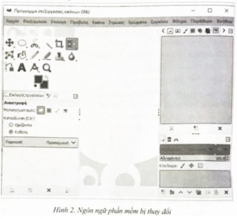 Câu E84 trang 42 SBT Tin học 8: Máy tính em đã cài phần mềm GIMP. Tuy nhiên, một bạn đã vô tình chuyển ngôn ngữ của phần mềm sang một thứ tiếng khác như Hình 2, em cần phải làm gì để có thể chuyển giao diện của phần mềm về ngôn ngữ mặc định (tiếng Anh) hoặc tiếng Việt?