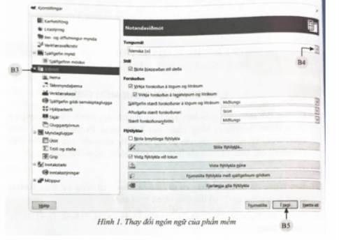 Bước 4: Phía tùy chỉnh giao diện người dùng ở bên tay phải cửa sồ pop-up có mũi tên để lựa chọn các ngôn ngữ có thể thay đổi trong giao diện người dùng. Em hãy lựa chọn tiếng Việt hoặc ngôn ngữ mặc định là tiếng Anh (B4)