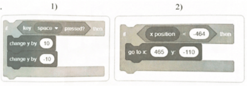 1) Sai. Vì điều kiện không chỉ là so sánh hai biểu thức số, ví dụ kiểm tra xem nhân vật có chạm biên sân khấu hay không