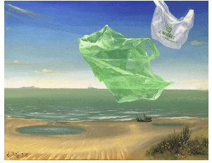 Hình ảnh hai chiếc túi ni-lông phản ánh sự vô ý thức của con người trong vấn đề bảo vệ môi trường.