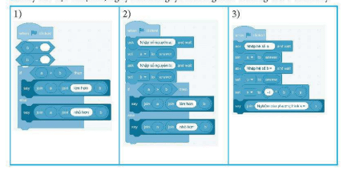 Học sinh dựa vào một trong các phương án lắp ghép đúng ở bài 7 để tạo chương trình.