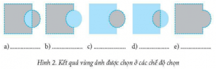 Câu 8 trang 51 SBT Tin học 8: Giả sử sau khi đã chọn vùng ảnh hình vuông, ta thực hiện chọn vùng ảnh hình tròn và ở các chế độ chọn vùng ảnh khác nhau ta được các kết quả khác nhau như ở Hình 2. Hãy điền tên chế độ chọn vùng ảnh vào chỗ chấm cho phù hợp.
