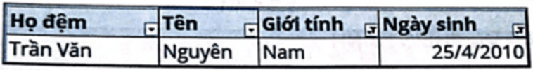 Câu 6.9 trang 23 SBT Tin học 8: Thực hành: Cho bảng dữ liệu minh họa trong Hình 6.5