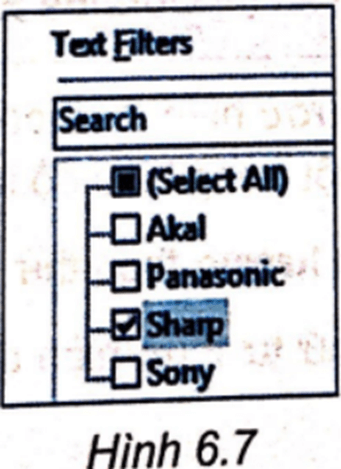e) Cách lọc danh sách các mặt hàng của nhà cung cấp ứng dụng Sharp như Hình 6.7