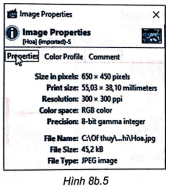 – Chọn lệnh Image/Image Properties (Hình 8b.7), cửa sổ Image Properties
