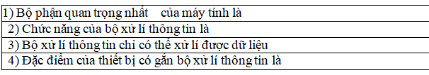 Bảng 1. Một số đặc điểm của thiết bị có gắn bộ xử lí thông tin: