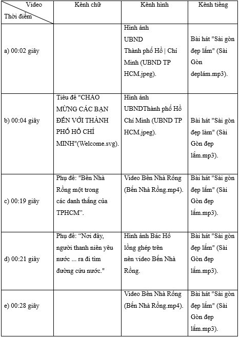 - Âm thanh bài hát "Sài gòn đẹp lắm" sẽ nhỏ dần rồi dừng hẳn. Thay vào đó là âm thanh trong video Chợ Bến Thành (Chợ Bến Thành.mp4).
