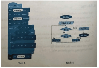 Câu 3: Ghép nối mỗi thao tác, cấu trúc lặp trong thuật toán ở Hình 4 với lệnh, khối lệnh tương ứng trong chương trình ở Hình 3