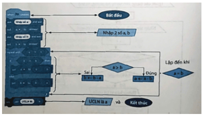 b) Sau khi tạo chương trình, bạn A sẽ kiểm thử để phát hiện lỗi, sửa lỗi cho chương trình, chạy chương trình để máy tính thực hiện tìm ƯCLN của hai số nguyên dương a, b được nhập từ bàn phím.