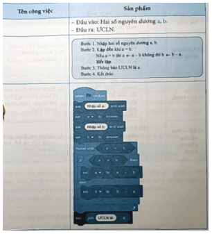 Câu 4: Để giao nhiệm vụ tìm ƯCLN cho máy tính giải quyết, bạn A đã thực hiện một số công việc và được sản phẩm như trong bảng dưới đây.
