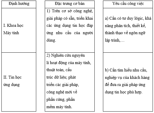 Câu 2: Ghép mỗi định hướng với một đặc trưng cơ bản, yêu cầu công việc cho phù hợp.