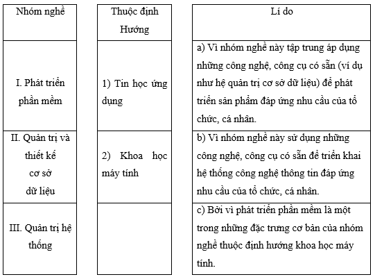 Câu 3: Ghép mỗi nhóm nghề với một định hướng và một lí do cho phù hợp.