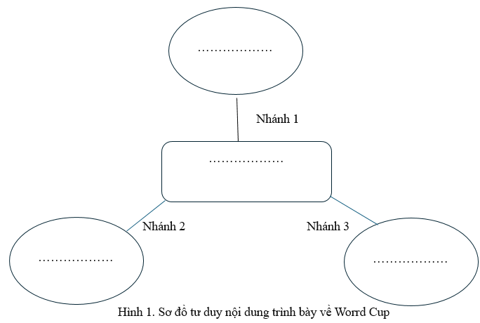 a) Điền các cụm từ (World Cup; Các đội tuyển dành Cup vàng; Bàn thắng đẹp nhất World Cup 20... World Cup tiếp theo) vào chỗ chấm ở Hình 1 đề hoàn thành các thành phần chính của sơ đồ tư duy.