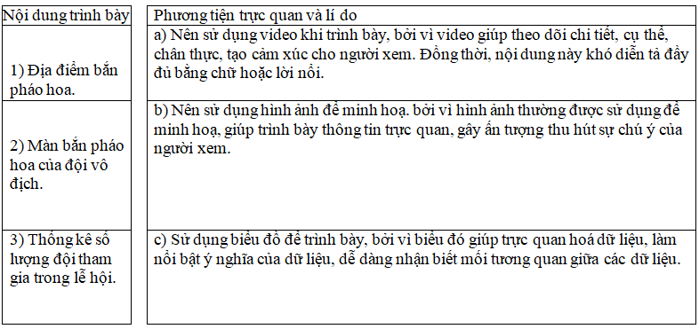 Câu 2: Điền các cụm từ (hình ảnh, âm thanh và văn bản; cụ thể, chi tiết, chân thực diễn biến; Hình ảnh, biểu đó, video) vào chỗ chấm cho phù hợp.