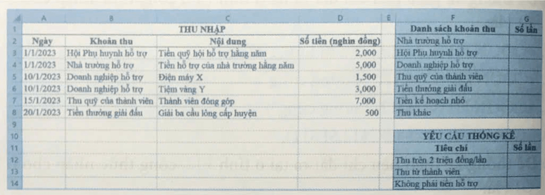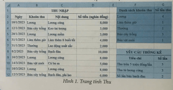 b) Trên trang tính Thu, lập công thức để thực hiện các yêu cầu thống kê dữ liệu thu nhập tương tự như ở Hình 2.
