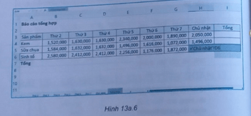 D. Trang tính Tổng hợp lưu số tiền bán hàng của cả tuần như mô tả Hình 13a.2.