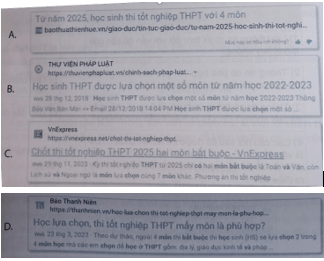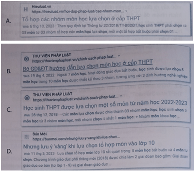 Câu 3.2: Trong những mục tin tìm được theo Trả lời câu hỏi hỏi: “Chọn môn học ở trường THPT như thế nào?”, mục tin nào sau đây có tính mới cao nhất?