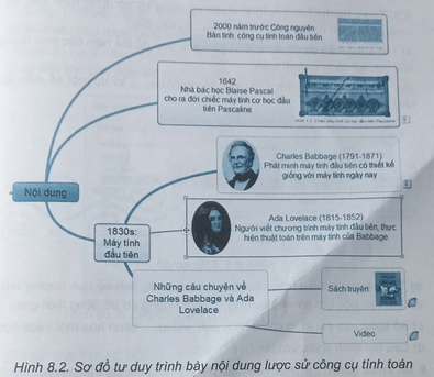 Câu 8.7: Cho sơ đồ tư duy trình bày nội dung lược sử công cụ tính toán như Hình 8.2.