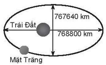 Mặt Trăng chuyển động quanh Trái Đất theo quỹ đạo là một đường elip với tâm Trái Đất là một tiêu điểm. Độ dài trục lớn, độ dài trục nhỏ của quỹ đạo lần lượt là 768 800 km và 767 640 km. Tìm khoảng cách lớn nhất và bé nhất từ tâm của Trái Đất đến Mặt Trăng.