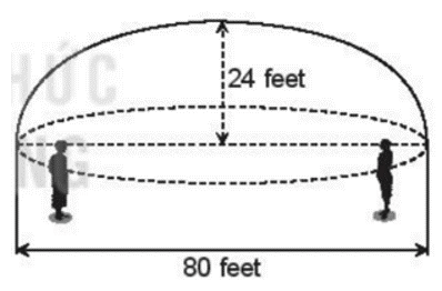 Theo đề bài, mặt cắt ngang là một hình bán elip với chiều cao 24 feet và chiều rộng 80 feet nên mặt cắt của phòng thì thầm là một nửa elip có a = 40 feet, b = 24 feet nên