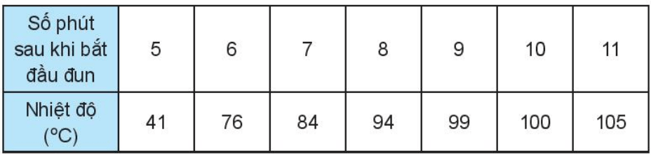 a) An đã thu được dữ liệu trên bằng cách làm thí nghiệm (đo nhiệt độ của nước tại một số thời điểm sau khi bắt đầu đun).
