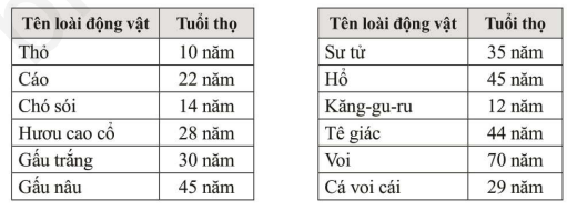 Câu 4. Tuổi thọ của một số loài động vật trong vườn thú được thống kê như sau: