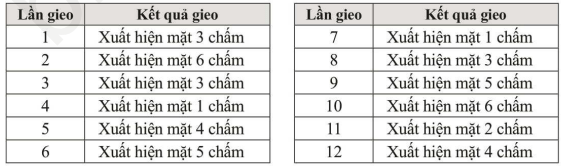 a) Hãy kiểm đếm số lần xuất hiện mặt 3 chấm và mặt 5 chấm sau 12 lần gieo.