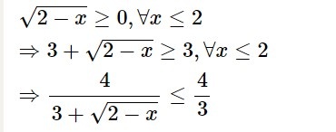 Dấu “=” xảy ra khi 2−x=0⇒x=2(tm)