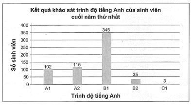Biểu đồ sau cho biết kết quả khảo sát trình độ tiếng Anh của sinh viên cuối năm thứ nhất ở một trường đại học: