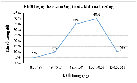 Kiểm tra khối lượng của một số bao xi măng trước khi xuất xưởng cho kết 1 quả như sau: