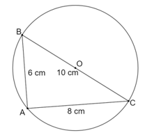 Tính bán kính và chu vi của đường tròn ngoại tiếp tam giác ABC có ba cạnh AB = 6 cm, AC = 8 cm và BC =10 cm.