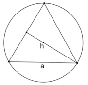 Gọi a và h lần lượt là độ dài cạnh và chiều cao của tam giác đều, r là bán kính của đường tròn ngoại tiếp tam giác đều.
