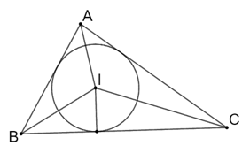 Vì I là giao điểm các đường phân giác của tam giác ABC nên ta có:
