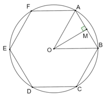 Tương tự ta tính được khoảng cách từ O đến tất cả các cạnh của lục giác đều đều bằng nhau và bằng ![]()