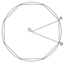 Cho một bát giác đều (đa giác đều có 8 cạnh) nội tiếp một đường tròn tâm O. Kẻ các đoạn thẳng nối O với các đỉnh của đa giác và chia đa giác thành 8 tam giác nhỏ cân tại đỉnh O. Ba góc của mỗi tam giác nhỏ có số đo bằng bao nhiêu?