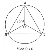 Cho tam giác đều ABC nội tiếp đường tròn (O) như Hình 9.14. Hãy cho biết các phép quay thuận chiều lần lượt 120°; 240°; 360° với tâm O biến các đỉnh A, B, C thành những điểm nào.