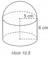 Một hộp đựng mĩ phẩm được thiết kế thân hộp có dạng hình trụ, nắp hộp có dạng nửa hình cầu với kích thước như Hình 10.5. Nếu sơn bên ngoài vỏ hộp (không sơn đáy) thì diện tích cần sơn là bao nhiêu?
