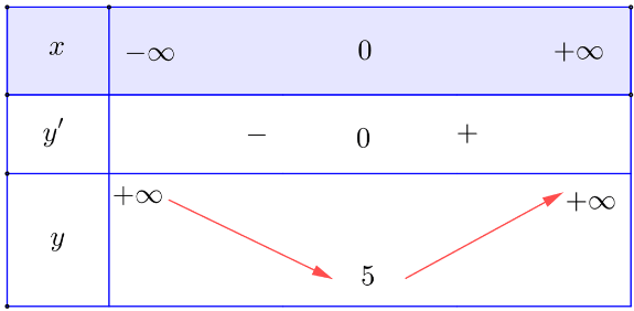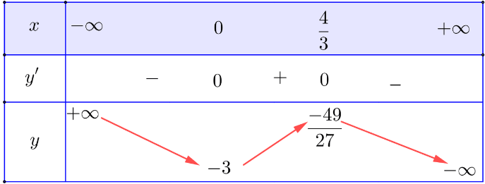 Bảng biến thiên: