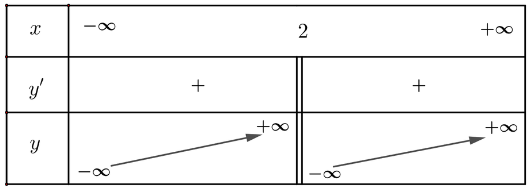 \(y'=\frac{x^2-4x+6}{\left(x-2\right)^2} >0\) với mọi x khác 2.
