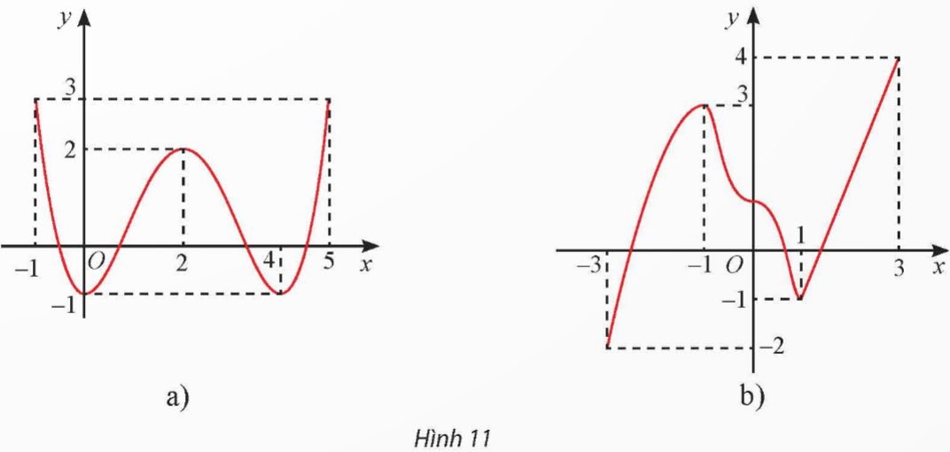 Tìm các khoảng đơn điệu và cực trị của các hàm số có đồ thị cho ở Hình 11.