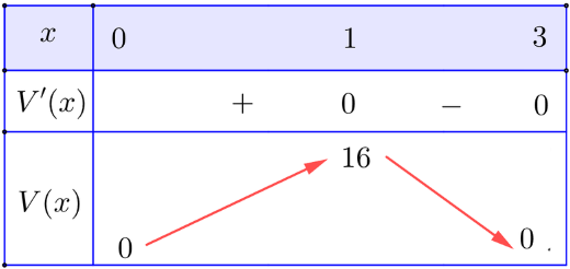 Từ bảng biến thiên, hàm số y = V(x) đạt cực đại tại x = 1.
