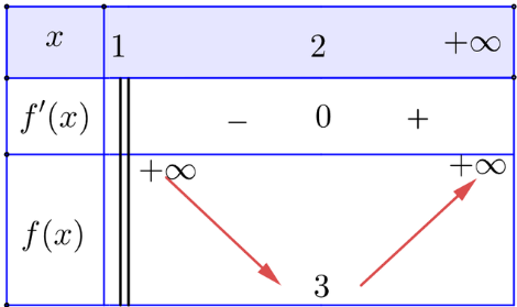 f'(x) = 0 ⇔ x = 2 (vì x > 1)