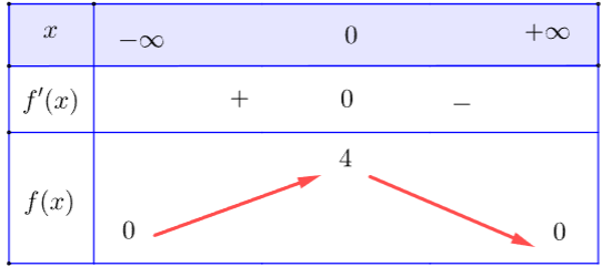 \((-\infty ;+\infty )\), hàm số đạt giá trị lớn nhất bằng 4 tại x = 0.