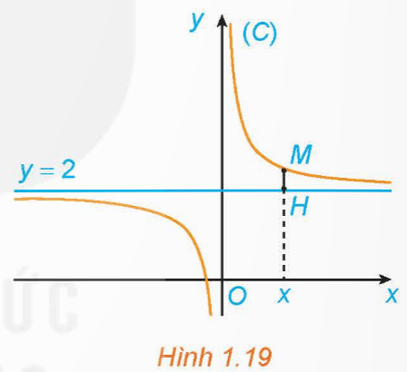 \(y=f\left(x\right)=\frac{2x+1}{x}\) có đồ thị (C). Với x > 0, xét điểm M(x; f(x)) thuộc (C). Gọi H là hình chiếu vuông góc của M trên đường thẳng y = 2 (H.1.19).