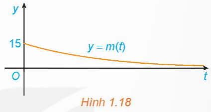 Giả sử khối lượng còn lại của một chất phóng xạ (gam) sau t ngày phân rã được cho bởi hàm số m(t) = 15e− 0,012t. Khối lượng m(t) thay đổi ra sao khi t → +∞? Điều này thể hiện trên Hình 1.18 như thế nào?